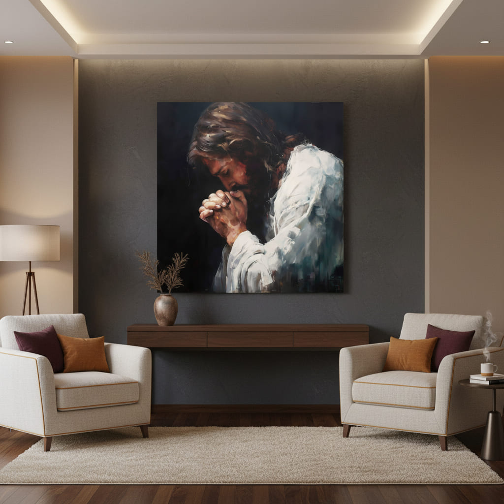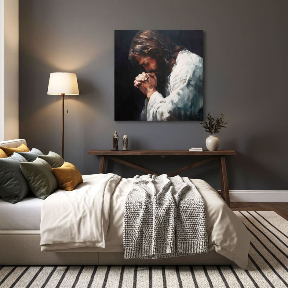 Спална соба А: Сликите со мирни и меки тонови, како што е Христос со мирен израз, се идеални за спалната соба, каде што ќе ѝ дадат на собата атмосфера на мир и приватност.