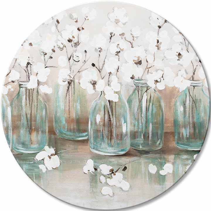 За разлика од традиционалните правоаголни форми, кружните слики додаваат елемент на флуидност и визуелна бесконечност во секој ентериер. Нивниот уникатен облик ги проширува границите на традиционалните перцепции за уметноста, отворајќи нови можности во композицијата и дизајнот и внесувајќи динамика и свежина во вашите домови и канцеларии.